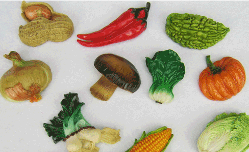 蔬菜冰箱用贴则是用各种蔬菜为原型进行设计的。蔬菜的种类有很多,在这套冰箱用贴中也无法涵盖完全,目前有青菜、黄瓜、蒜、葱、韭菜、芦笋、青椒、白菜、生菜、菜花、苦瓜、豆角等种类。